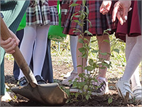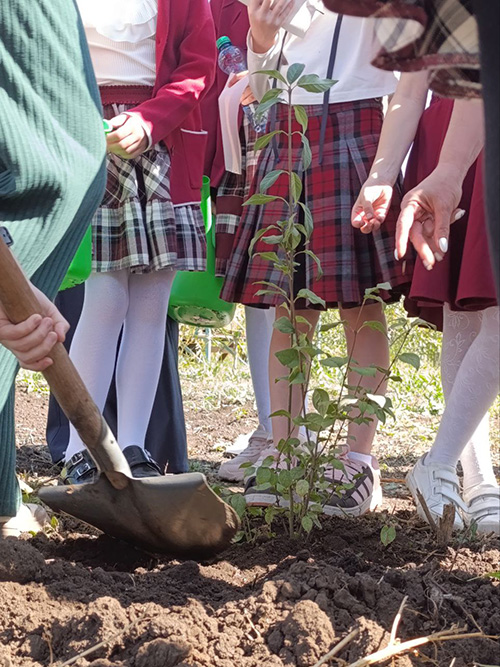 По окончании экскурсионной программы, по сложившейся уже традиции, на коллекционном участке ботанического сада «Гостевой сад» школьники высадили саженцы сирени и каштана.